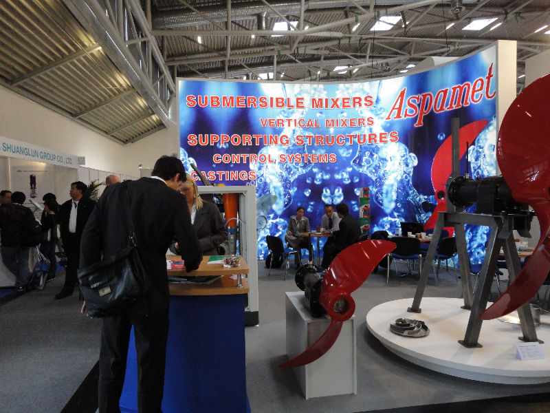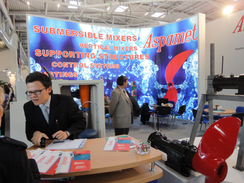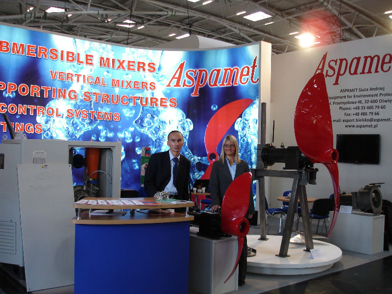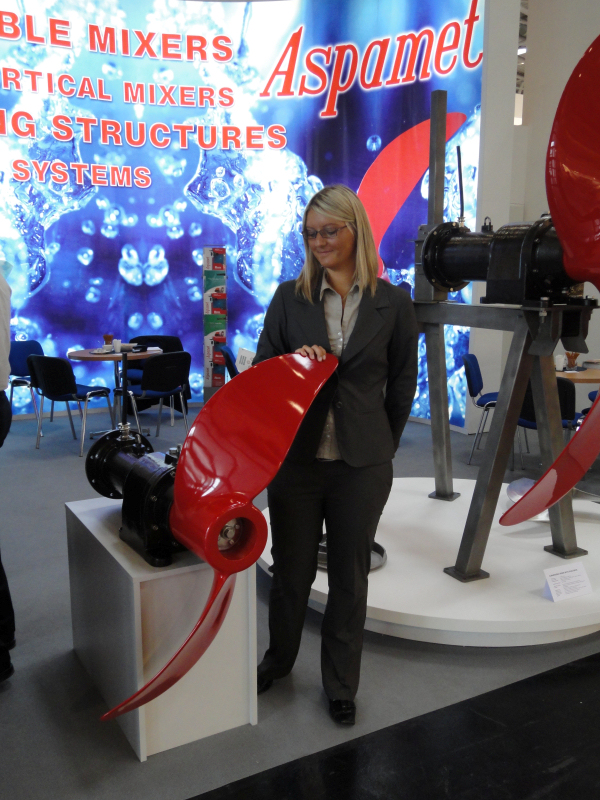 Prezentowaliśmy szereg eksponatów takich jak min. duże mieszadło typu AR z napędem poprzez reduktor wyposażone w laminatowe śmigło o średnicy 2200 mm wraz z konstrukcją wsporczą. Wzbudziło ono spore zainteresowanie nie tylko wśród publiczności ale i wśród przedstawicieli konkurencyjnych firm, zwłaszcza ze względu na imponującą geometrię śmigła i perfekcyjne wykonanie całości produktu. Prezentowaliśmy również mieszadło z tej samej rodziny o mniejszym rozmiarze, wyposażone w śmigło o średnicy 1200 mm.