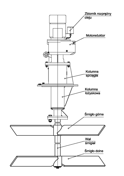Mieszadła pionowe produkowane są zgodnie z wymaganiami technicznymi odbiorcy, na podstawie dokumentacji własnej inwestora lub wykonanej przez nasz Zakład.